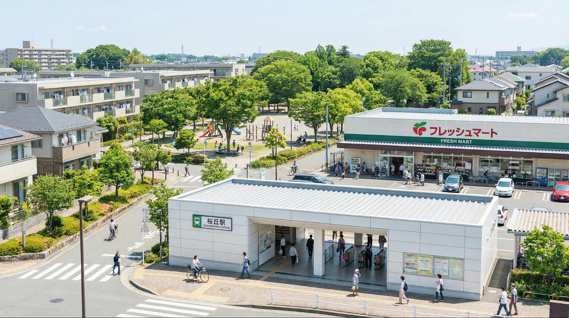 長く住む上で、周辺環境の充実度は生活の質を大きく左右します。スーパーやコンビニが徒歩圏内にあることはもちろん、ドラッグストアや銀行、郵便局などが近くにあると便利ですよね。