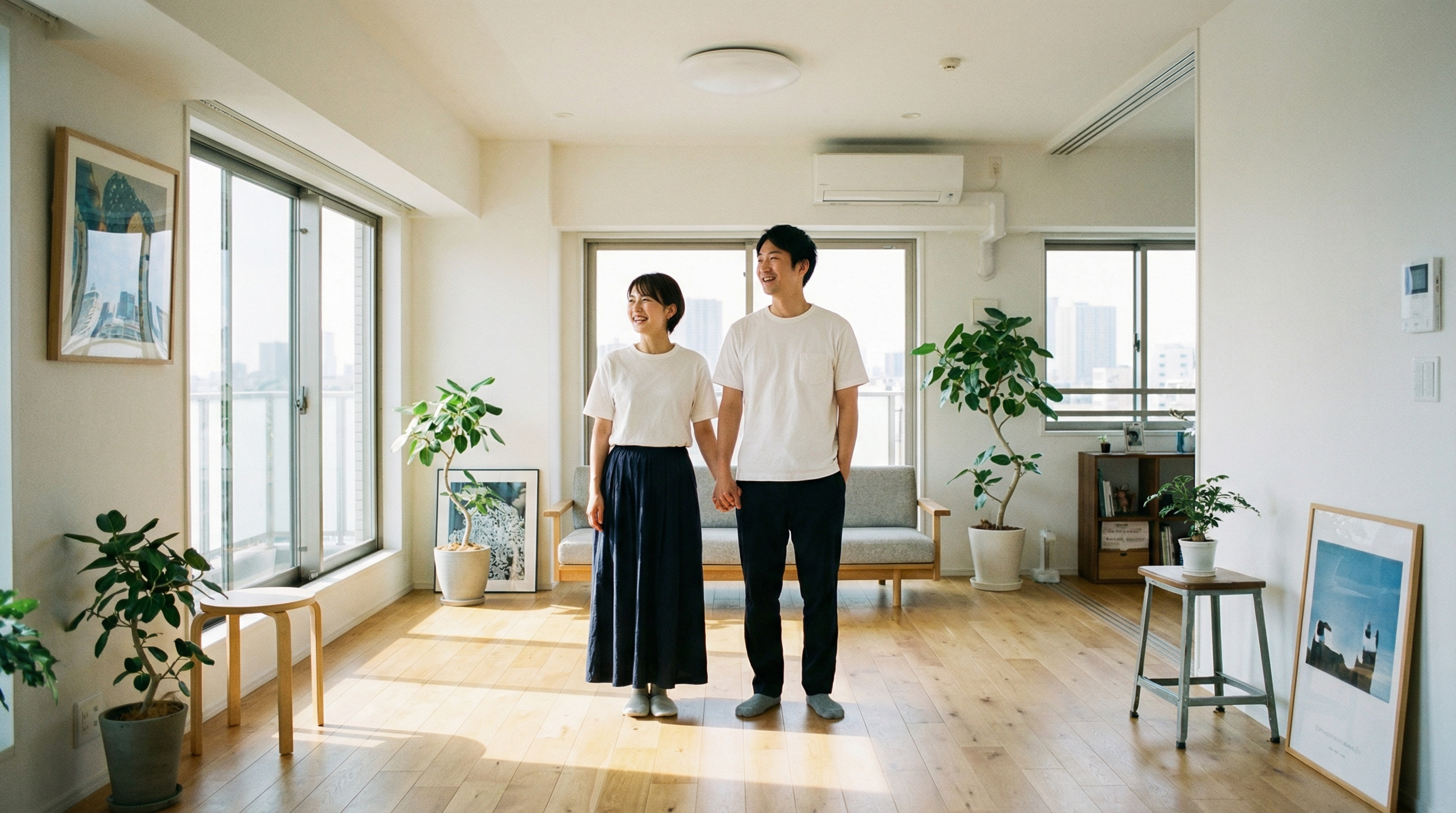 カップルやご夫婦の場合、国が定める最低限の基準(10㎡×人数+10㎡)では30㎡とされています。ただ、一般的には50㎡以上あると寝室とリビングをしっかり分けられ、プライベートな時間も確保しやすくなります。