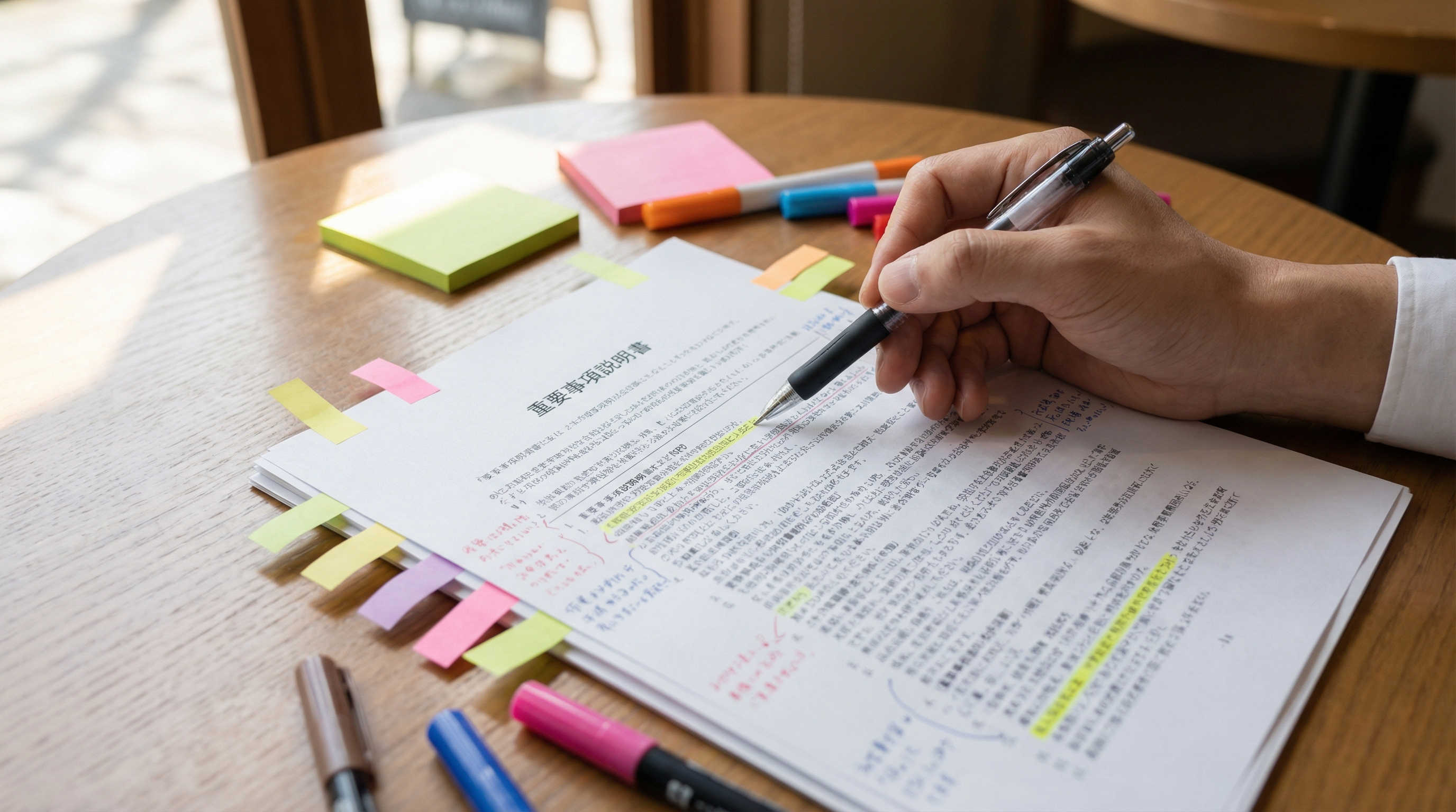 当日初めて分厚い書類を渡されても、その場で内容を理解するのはプロでも難しいものです。専門用語が並ぶ書類を読み上げられても、頭に入ってこないのが普通です。